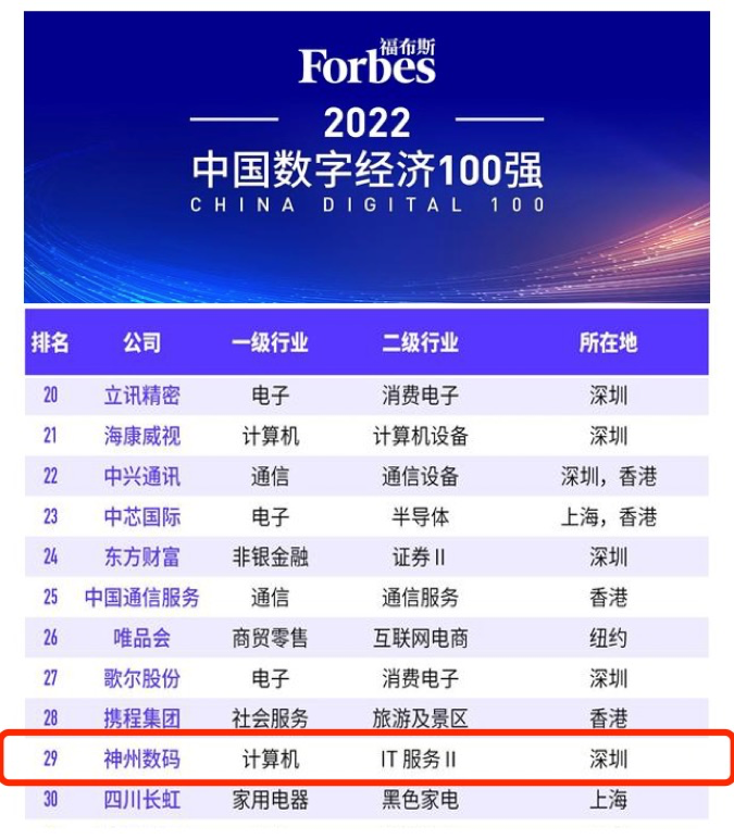 8月20日,“福布斯2022中国数字经济100强榜单”在江西上饶发布。作为数字中国的探索者、实践者和赋能者,焦点娱乐数码凭借杰出的表现,位列百强榜单第29位,计算机类第3位,再度获得权威机构认可。